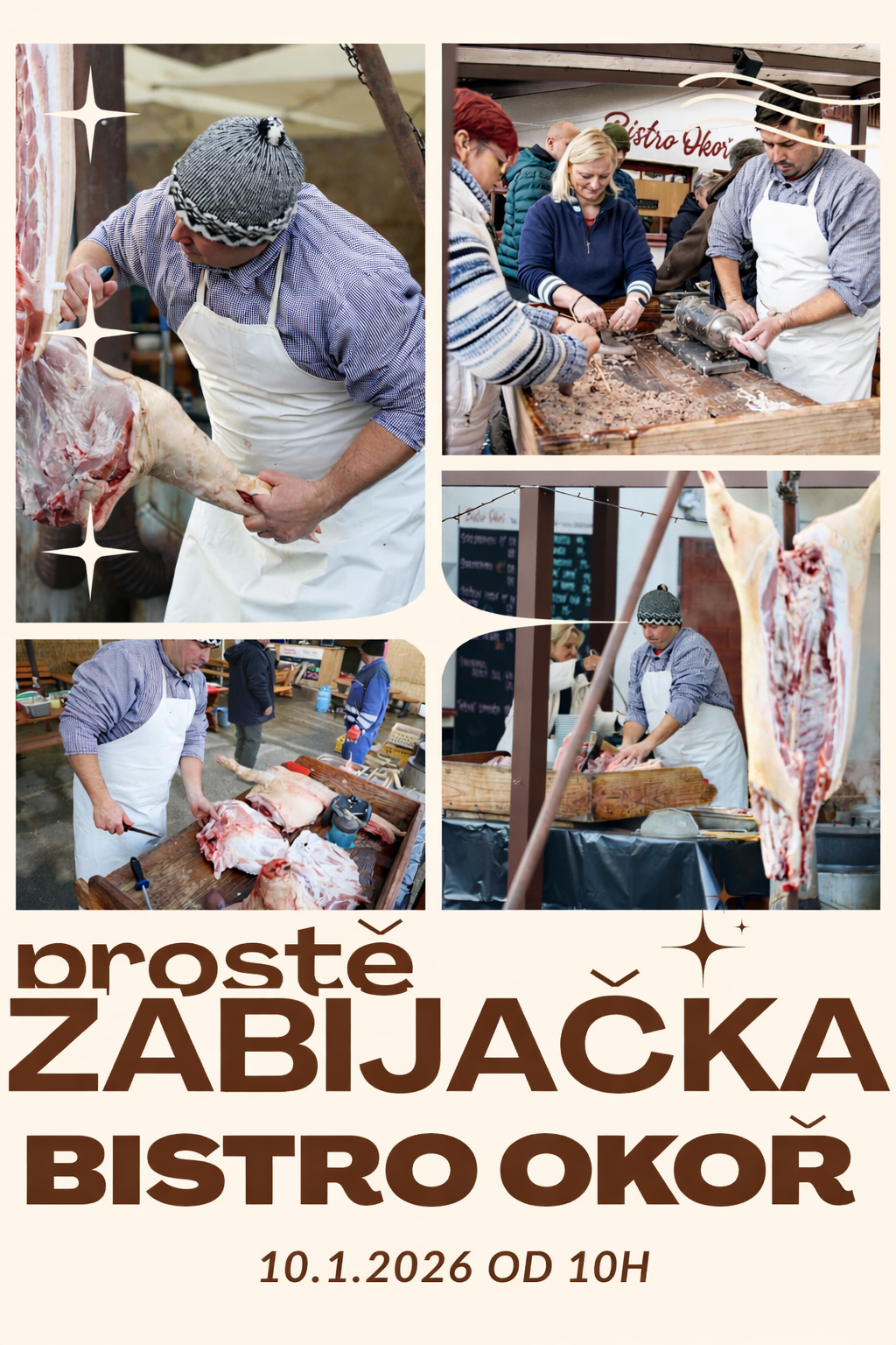 Sobota 10. 1. 2026 od 10:00Čerstvě zabito, čerstvě natočeno! U nás se místo influencerů fotí jitrnice.Nepřijdeš? Pošleme ti tlačenku poštou (ale bez záruky).Zabijačka — taková česká verze spa víkendu.Kdo přijde nalačno, ten odchází s tácem.